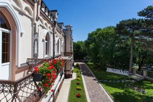 в центре курортного района, у входа в лечебный парк, недалеко от питьевых
