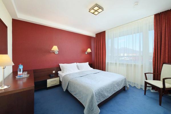 Оснащение номера: Wi-Fi интернет, кондиционер, ЖК-телевизор, телефон, удобная кровать, письменный стол, стул, банкетка, ванная комната оборудована гидромассажной душевой кабиной, фен, набор косметических принадлежностей: мыло, шампунь, гель для душа, зубной набор (паста и зубная щетка), шапочка для душа.