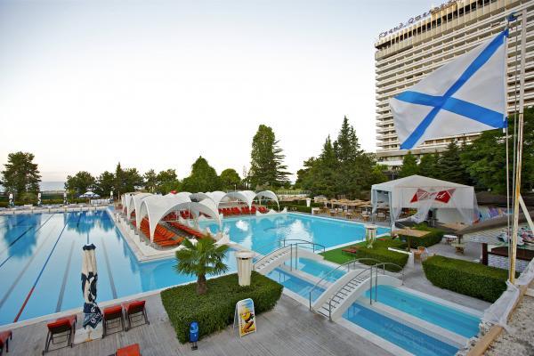 Отель расположен на первой береговой линии Черного моря, в центральной части города Сочи, и представляет собой современный 17-ти этажный отель в центре города Сочи, из окон которого открывается прекрасная панорама Кавказских гор и Черного моря. Отель окружен уникальной парковой зоной с тропическими растениями, рядом с которым находится «Зимний театр», цирк, концертный зал «Фестивальный», ботанический парк «Дендрарий», музеи и театры.