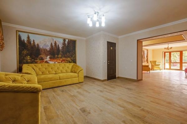 двухспальная кровать (2 односпальные кровати), диван, деревянный пол, туалет,