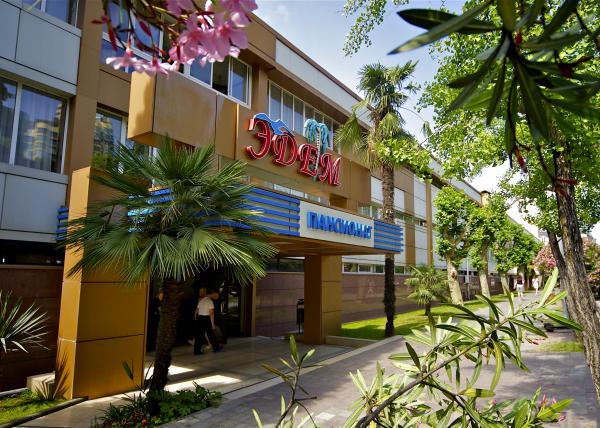Пансионат «Эдем» построен в сорока метрах от моря, практически на пляжной полосе и располагает трехэтажным спальным корпусом на 270 мест. Находясь в номере Вы не только сможете насладиться прекрасным видом на море, но и услышать шум прибоя. Пансионат предназначен для семейного отдыха. Пляж пансионата расположен на живописном берегу в 40 метрах от спального корпуса. Протяженность пляжной галечно - песочной полосы 400 метров. Пляж оборудован всем необходимым для приятного отдыха и купания.