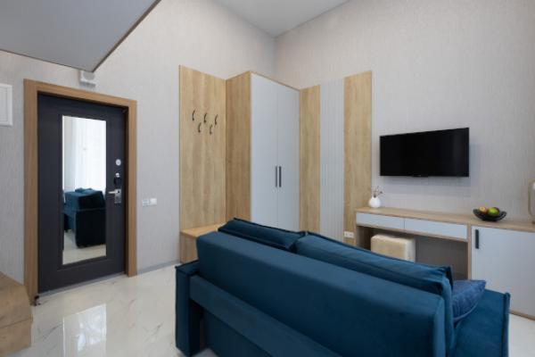 с раскладным диваном или креслом, плазменным телевизором, платяным шкафом,