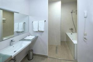спутниковыми каналами, чайник, душ, фен и письменный стол. В номерах отеля есть