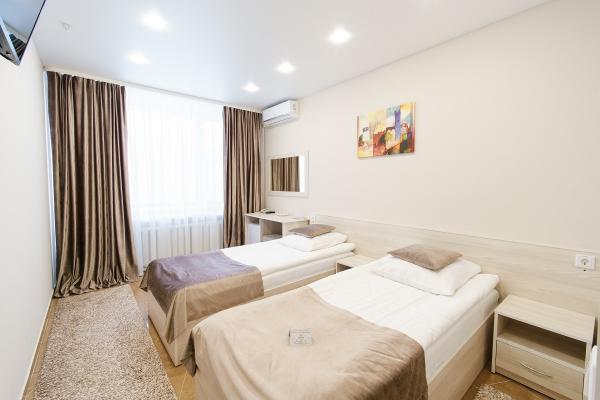 Двухместный однокомнатный номер с двумя раздельными кроватями. Уютный и светлый однокомнатный номер для двухместного размещения. Номер идеально подходит для тех, кто ценит комфорт и спокойствие. Современный дизайн интерьера и мебели номера выполнены в выдержанном стиле и создают ощущение домашнего уюта.