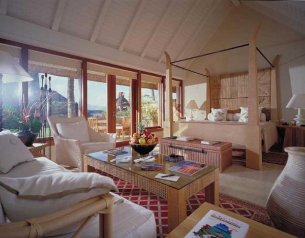 Все постройки стилизованы под африканскую деревню, в ландшафт которой удачно вписаны водопад, каналы с мостиками, деревянные идолы и бассейны с иссиня-фиолетовой плиткой. Номера находятся в одноэтажных виллах типа африканского бунгало с крышей из сахарного тростника. Внутренняя отделка номеров выполнена в спокойных пастельных тонах, что особо подчеркивает буйство красок тропического парка отеля. Все виллы имеют собственный дворик, огражденный в человеческий рост вулканическим камнем и деревом. На протяженном пляже, оборудованном понтоном, доступны все водные виды спорта. Близость к Морскому заповеднику с протяженным коралловым рифом делает привлекательным плавание с маской и ластами. Для любителей активного дневного времяпровождения имеется тренажерный зал, теннисные корты, бассейны с видом на океан и горы, джакузи, сауна, парная, а также СПА-центр, рестораны, бары и салон красоты. В The Oberoi Hotel отражается последняя тенденция элитного отдыха: максимальная уединенность на территории отеля и гармоничное слияние с природой.