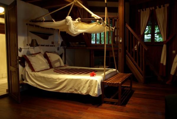 В номерах есть все удобства: спальня, подвесные гамаки, вентилятор.