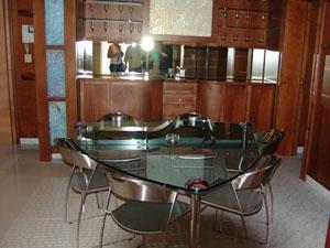 Presidential suite № 105 (макс. 4 чел.): 156 кв.м., прихожая, большая гостиная, две спальни. Полностью оборудованная кухня. В гостиной два гарнитура: белый кожаный и синий кожаный, журнальные столики, лампы, камин. На стене плазма экран и сураунд система CD и видео. Выход на собственную террасу, которая расположена вдоль всего апартамента. В большой спальне двуспальная кровать 2000 x 1700, плазма экран и сураунд система с видео и CD, сейф, телефон и выход на террасу. В меньшей спальне кровать 2000 х 1700, телевизор с DVD, телефон и большое окно, без выхода на террасу. В апартаментах 2 ванные комнаты и туалет. Большая ванная комната с джакузи.