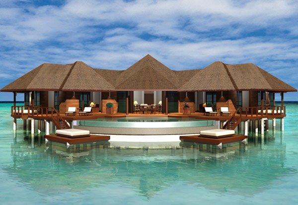 Grand water pavilion (419 кв. м): персональный бассейн, терраса, гостиная, столовая, 2 спальни с кроватями king-size, 2 ванные комнаты с джакузи. Вилла расположена над водой. Панорамный вид на океан. Услуги персонального камердинера.