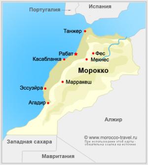 Географическое положение - Марокко находится на западе Северной Африки. От Европы страну отделяет лишь узкий Гибралтарский пролив (шириной всего в 15 км).
