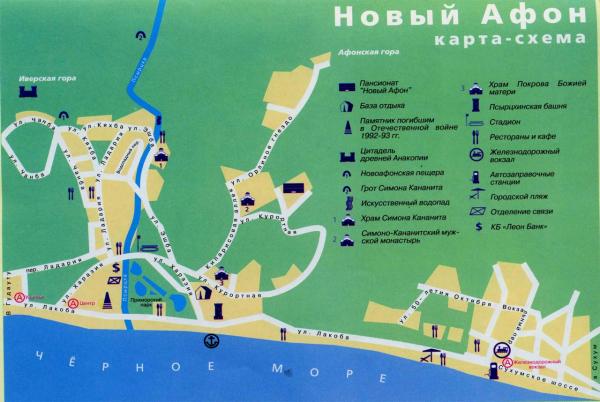 Новый Афон- живописный и уютный курорт Гудаутского района Абхазии - расположен на берегу небольшой бухты в 22 км от Сухума