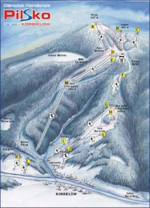 Подъемники находятся на северо-восточном склоне горы Нижни Ценькув (720 м). Основа центра - две параллельные 1000-метровые нитки бугельных подъемников. Общая протяженность трасс превышает 3 км.