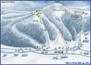 Общая длина горнолыжный трасс в Устроне более 6,5 км, г/л центр продолжает развиваться.