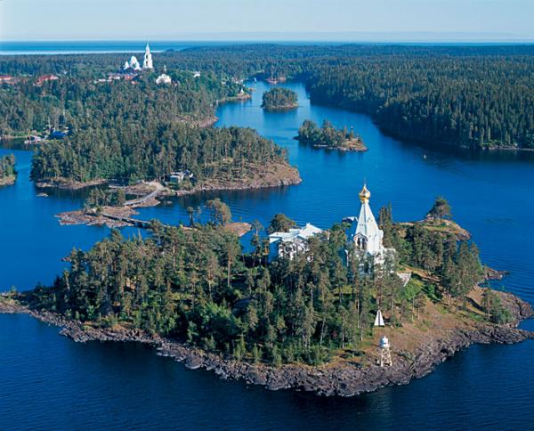 В северной части Ладожского озера лежат многочисленные скалистые острова Валаамского архипелага, получившего свое название от самого крупного из них - Валаама. Пейзажи острова обладают поистине фантастической красотой. Здесь могучие сосны и ели растут прямо на скалах, приподнятых над водой на десятки метров, а берега подчас выглядят неприступной крепостью.