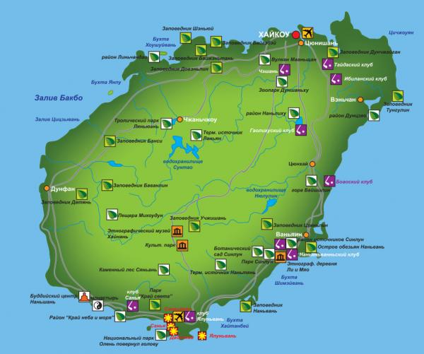 Карта отелей на о. Хайнань. Китай. Турфирма Сантатур